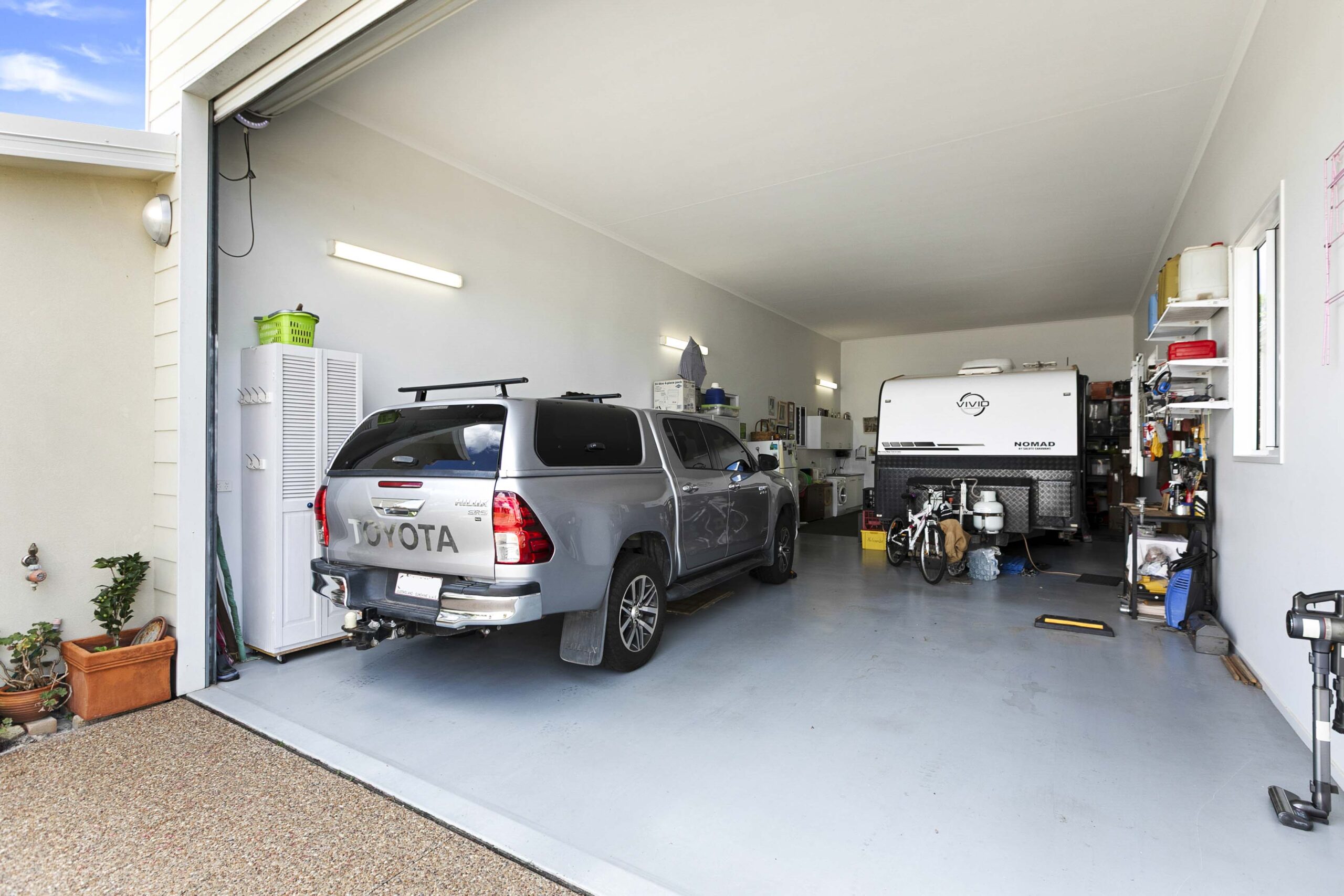 The impressive 14 m x 6 m garage provides ample room for vehicles, hobbies or storage, and also includes a practical laundry with extra cupboard space.